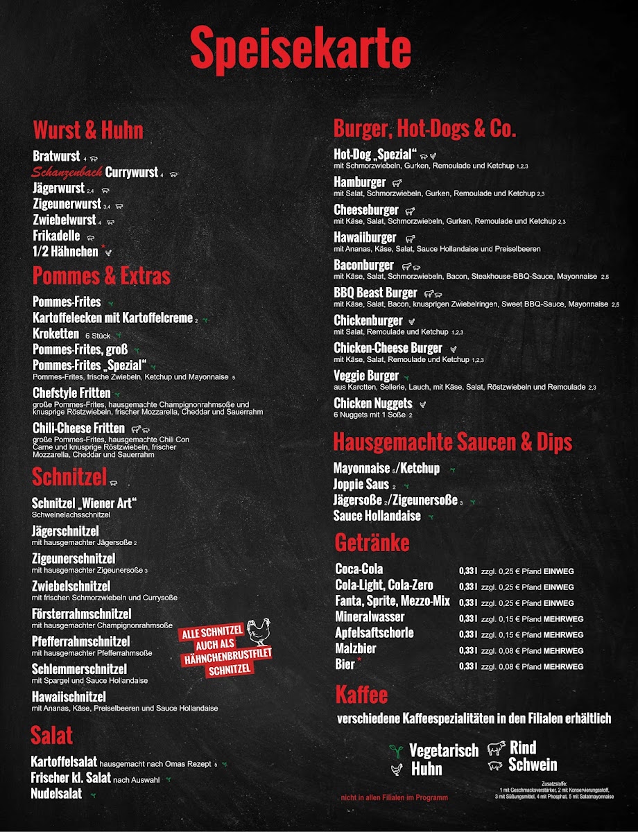 Welcome to Schanzenbach Snack & Grill, a hidden gem located at Werler Str. 132, Hamm, Germany. This fast food haven specializes in an enticing variety of traditional German grill options and wholesome snacks, ensuring every visit is a delightful experience. The menu offers beloved classics including juicy burgers, crispy fries, and succulent chicken, all crafted with care.